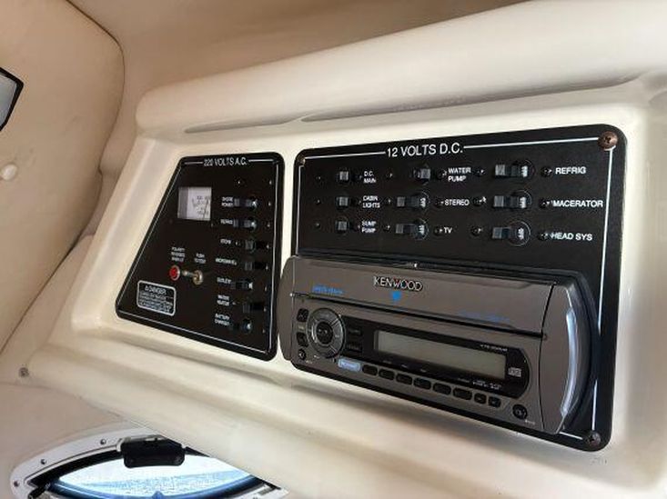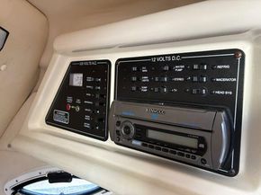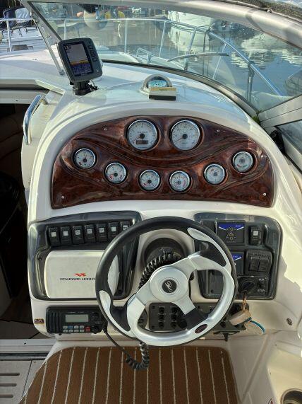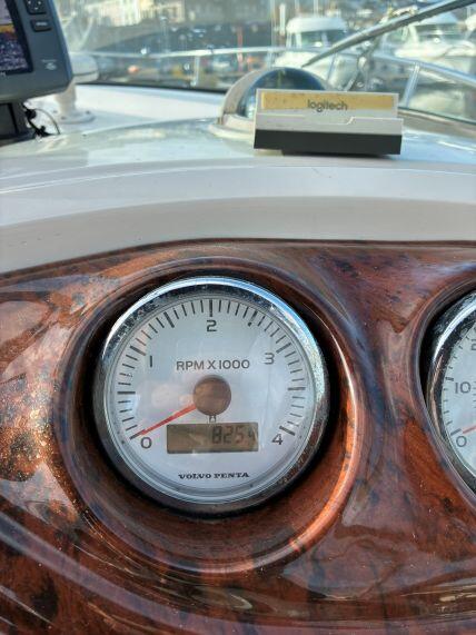 Located under the cockpit is the Volvo Penta D4 260hp 4-cylinder turbo charged diesel engine. Freshwater cooled via heat exchanger. Single lever EDC electronic controls and EVC electric start with Fly-By-Wire throttle. Volvo Duo Prop outdrive with power trim / tilt. Engine instrumentation with voltmeter, temperature, oil pressure, trim indicator, speedometer and revcount gauges. Trim Tabs.